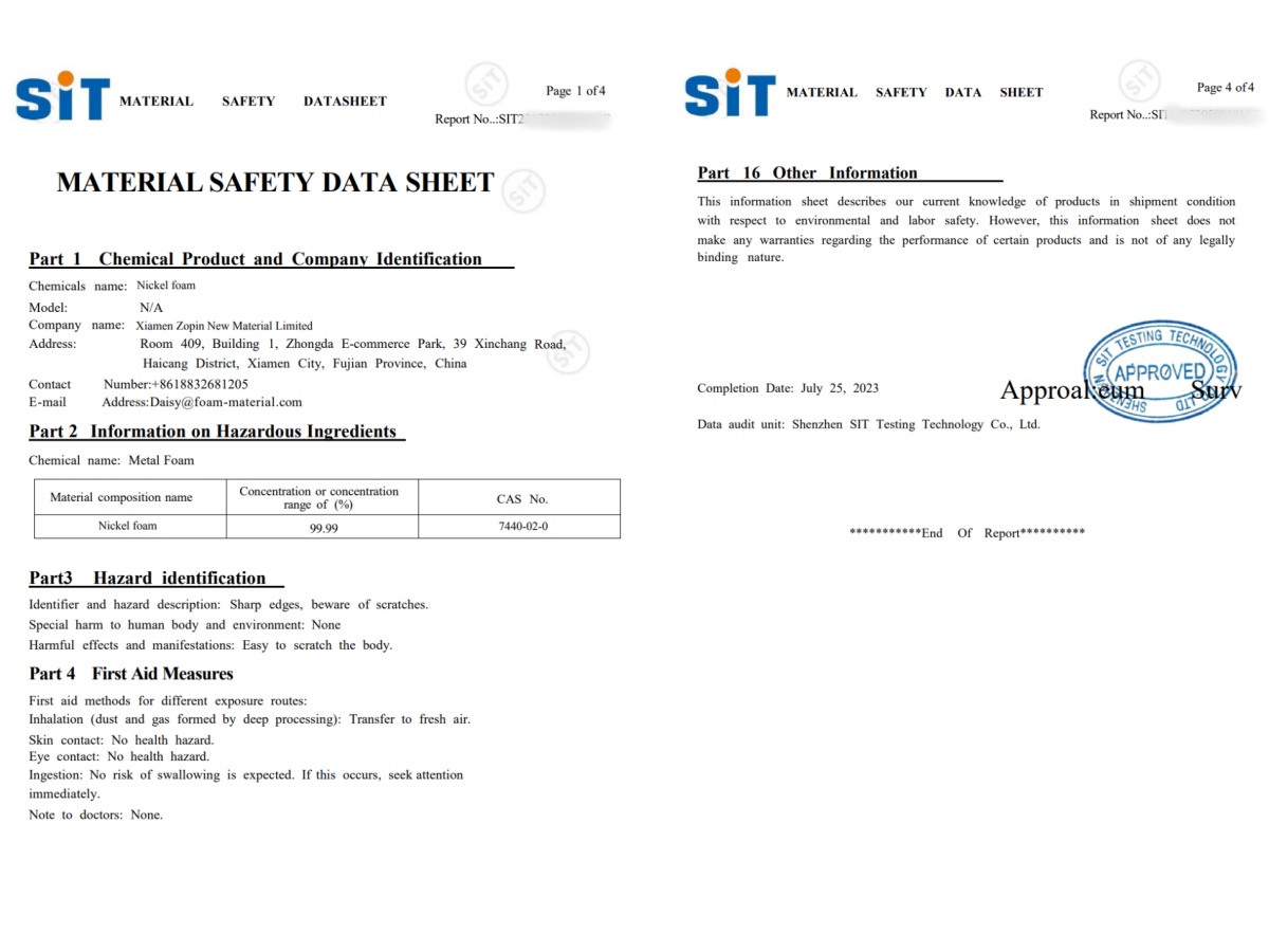 2. Foam nickel can be used in industry as filter material to process magnetic particle magnets in fluids. Other applications include applications in hydrogen storage media and heat exchange media.